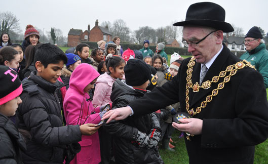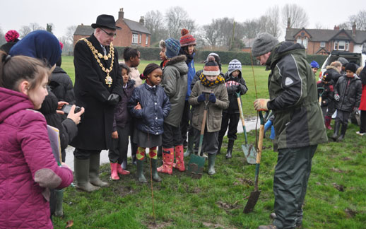 Children from The Oval School and Blakenhale School are joined by the Lord Mayor of Birmingham Councillor Mike Leddy & The Lady Mayoress Mrs Pauline Leddy, Tree Planting at Yardley Old Park.